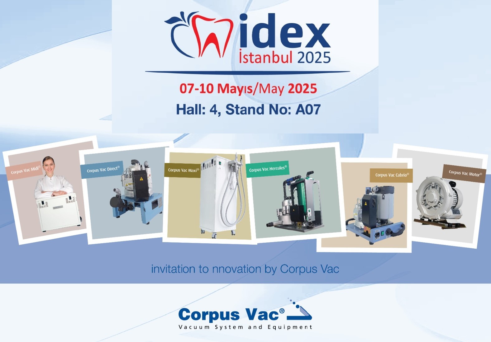 Corpus Vac Vakum Sistemleri Ltd. Şti. 1992’de kurulmuş olup 33 yıldır genç, dinamik deneyimli ve yenilenen kadrosuyla diş hekimliği ve medikal alanda hizmet veren ülkemizi uluslararası arenada temsil eden bir firmadır.